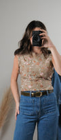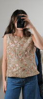 Size: Labeled 16, suits 14 / Brand: Talbots / Condition: 9/10 / Material: 100% pure silk / Type: Vintage / Colours: green, brown, pink