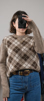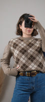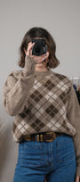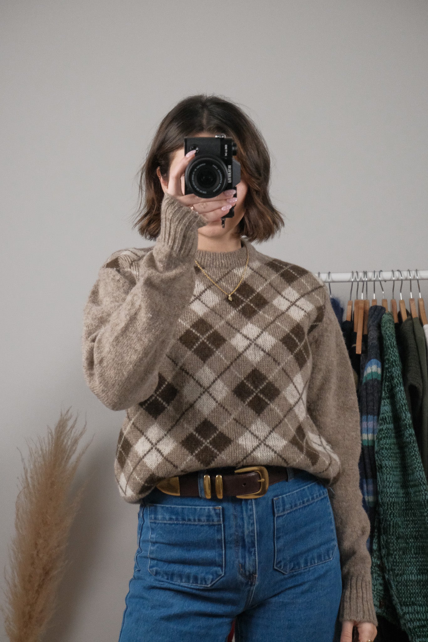 Size: Labeled M, suits M / Brand: La Ronde / Condition: 9/10 / Material: 100% shetland wool / Type: Vintage / Colours: Taupe, brown, cream