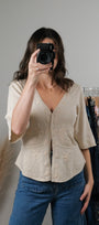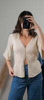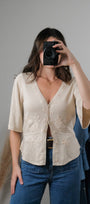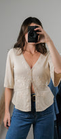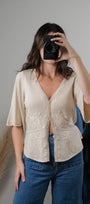 Size: Labeled M, suits S/M / Brand: Nine West / Condition: 9/10 / Material: 55% silk, 45% viscose / Type: Vintage / Colours: cream