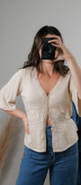 Vintage x Silk Blend Embroidered Blouse (S/M)