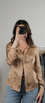 Size: Labeled S, suits S / Brand: midtown / Condition: 9/10 / Material: 100% silk / Type: Vintage / Colours: Gold