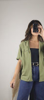 Size: Labeled XL, suits S-L / Brand: 100% Femme / Condition: 9/10 / Material: 100% silk / Type: Vintage / Colours: Green
