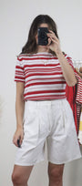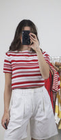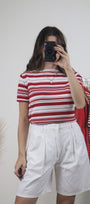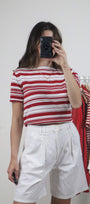 Size: Labeled M, suits M / Brand: J. Micheals / Condition: 9/10 / Material: 63% rayon, 37% nylon / Type: Vintage / Colours: Red, White