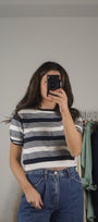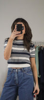 Size: Labeled S, suits S / Brand: Bay Club / Condition: 9/10 / Material: 100% cotton / Type: Vintage / Colours: Navy & White