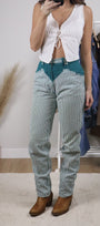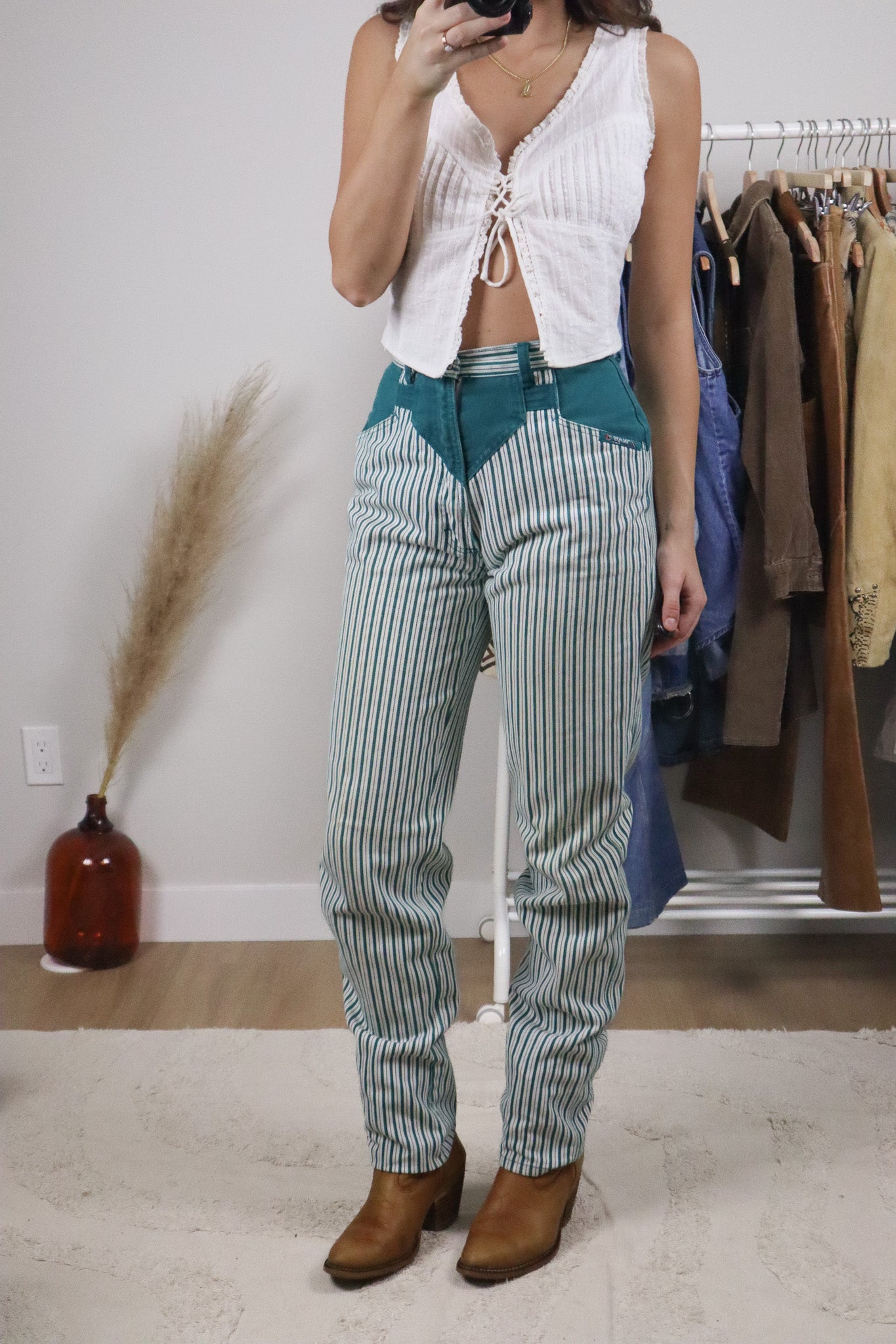Size: Labeled 27, suits 26 / Brand: Blaze / Condition: 9/10 (tiny hole on seam) / Material: 100% cotton / Type: Vintage / Colours: Green & White
