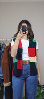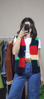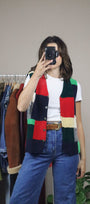 Size: Labeled M, suits M / Brand: Susan Bristol / Condition: 9.5/10 / Material: 82% cotton, 10% rayon, 4% acrylic, 4% others / Type: Vintage / Colours: Navy, cream, grey, red, green