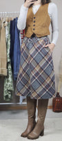 Vintage x 1970s Wool Blend Plaid Midi Skrit (2)