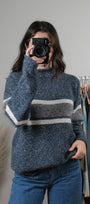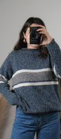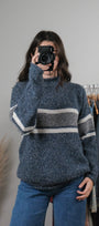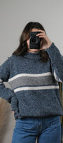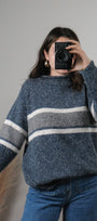 Size: Not labeled, suits L / Brand: 1.2.3 (un deux trois) / Condition: 9/10 / Material: 67% acrylic,17% cotton, 9% wool, 7% nylon / Type: Vintage / Colours: Navy, cream, grey