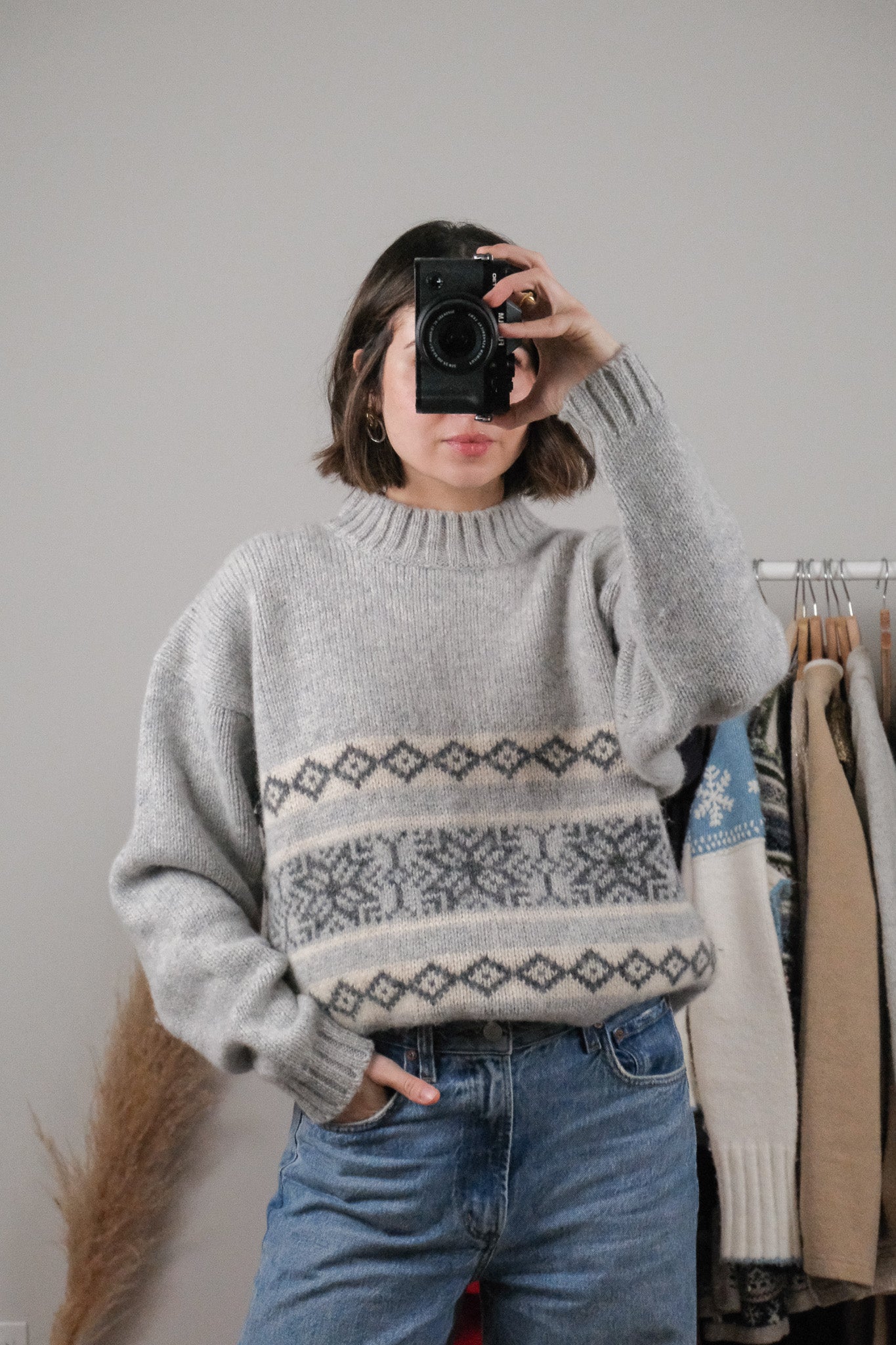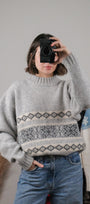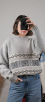 Size: Labeled M, suits L / Brand: et vous / Condition: 9/10 / Material: 100% wool / Type: Vintage / Colours: Grey, cream