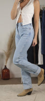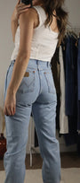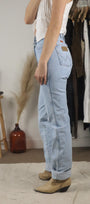 Size: Labeled 1, suits 2 / Brand: Wrangler / Condition: 9/10 / Material: 100% cotton / Type: Vintage / Colours: Denim